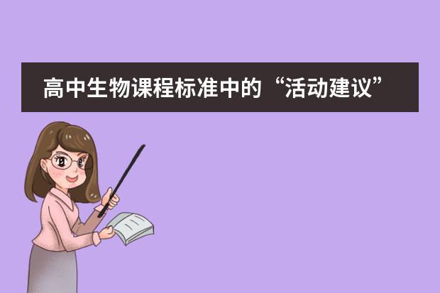 “活动建议”不都是实验。活动建议是为了更好的实现课程目标,你可以参阅一下课程标准的P7——课程目标和P10“活动建议列举了有利于学习目标达成的观察、调查、资料的搜集和分析、讨论、实验、探究等活动”。